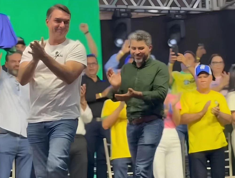 Com pai preso, Flávio Bolsonaro faz ataque ao PT em RO