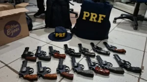 Uma ação da Polícia Rodoviária Federal (PRF) resultou na apreensão de 14 armas de fogo e na prisão de um passageiro de 44 anos, na tarde deste domingo (15), no km 759 da BR-364, em Porto Velho.