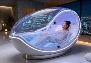 A cabine funciona com o usuário sentado durante toda a sessão. Antes do início do banho, sensores internos coletam dados como batimentos cardíacos e níveis de estresse. A partir dessas informações, a máquina adapta o funcionamento em tempo real. Ao final, o equipamento seca o corpo com ar quente e pode liberar fragrâncias leves. A estrutura também inclui isolamento acústico, além de telas, luzes e sons programados para criar um ambiente de relaxamento.