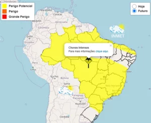 O Instituto Nacional de Meteorologia (Inmet) emitiu um alerta de perigo potencial para chuvas intensas em diversas regiões do país, incluindo o estado de Rondônia. O aviso tem início às 10h deste sábado (19) e segue até as 10h de domingo (20).
