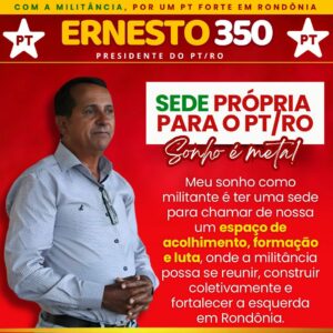 Mídia Rondônia – A deputada estadual Cláudia de Jesus (PT) declarou seu apoio à candidatura de Ernesto Ferreira (350) à presidência estadual do Partido dos Trabalhadores em Rondônia. Militante da legenda, Cláudia destacou o compromisso de Ernesto com as bases e com a construção de um PT mais forte, combativo e conectado com a realidade do povo rondoniense.