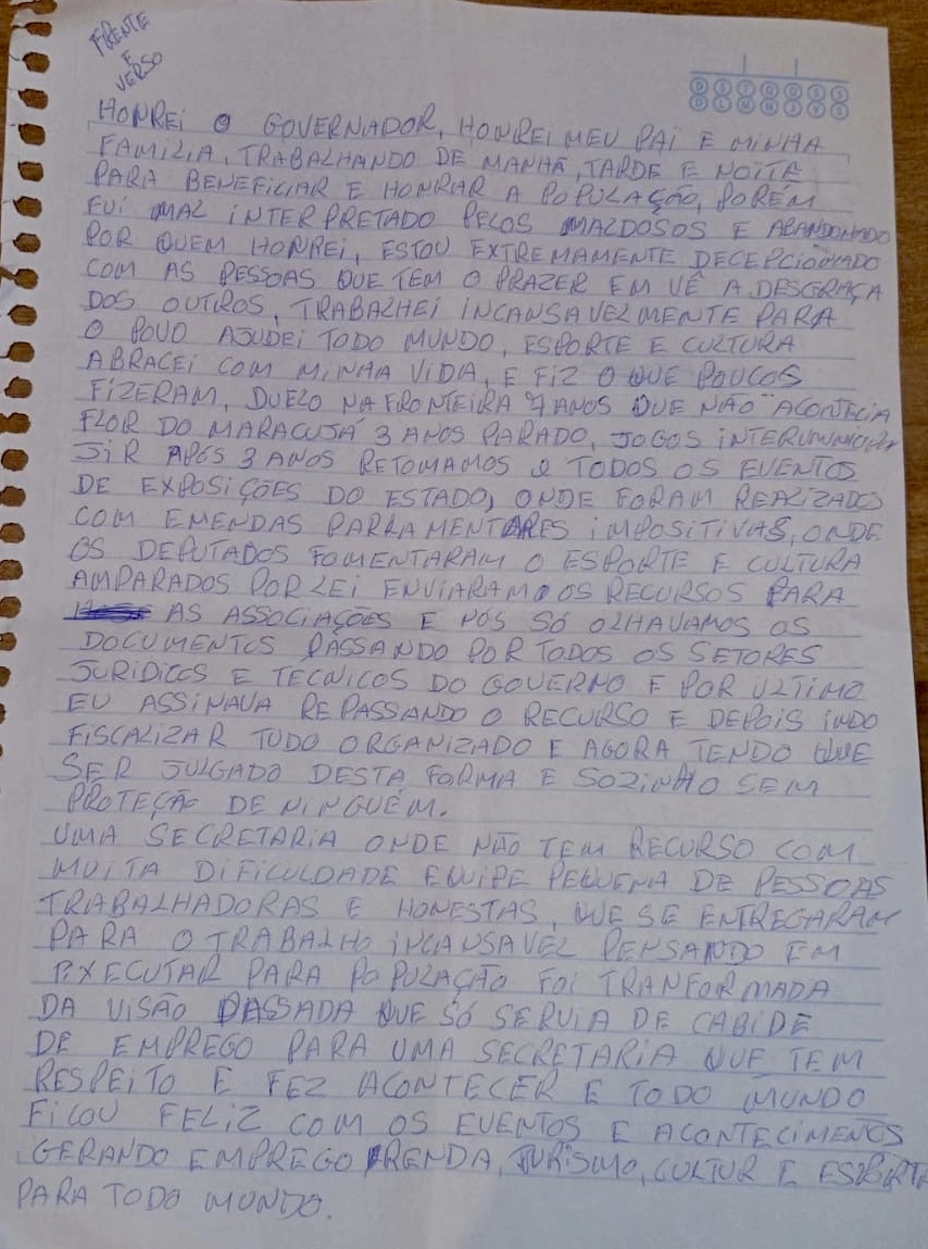 Ex-secretário Júnior Lopes desabafa em carta escrita da prisão: “Me vejo julgado e condenado injustamente”