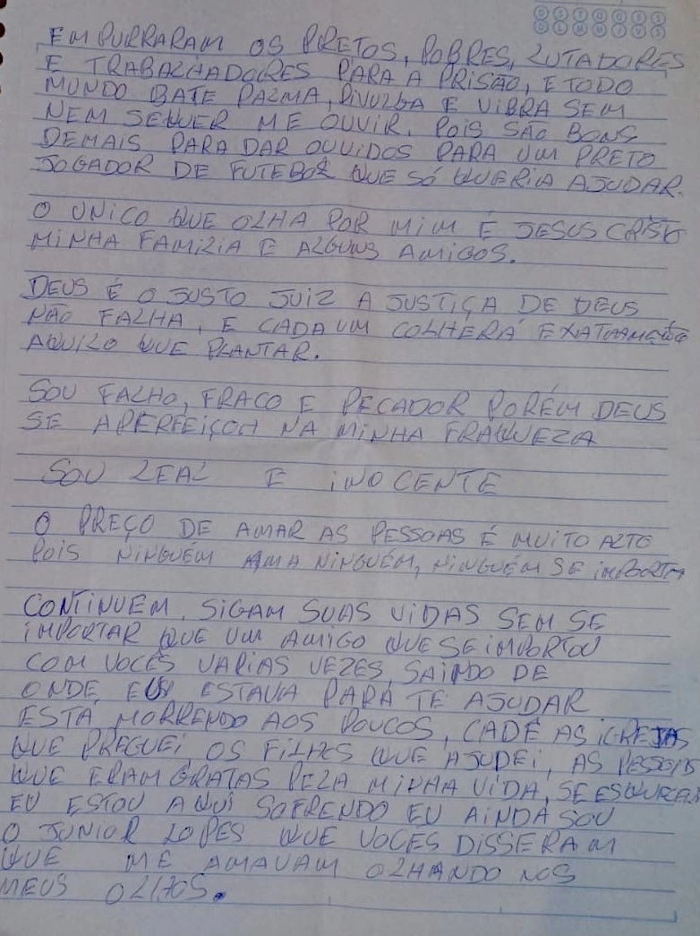 Ex-secretário Júnior Lopes desabafa em carta escrita da prisão: “Me vejo julgado e condenado injustamente”