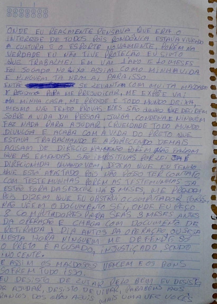 Ex-secretário Júnior Lopes desabafa em carta escrita da prisão: “Me vejo julgado e condenado injustamente”