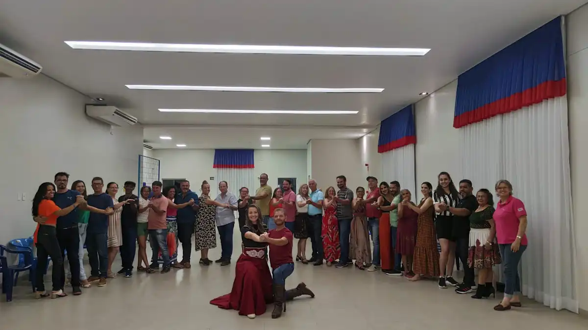 A última aula do curso de dança gaúcha, promovido pela SM Eventos, de propriedade de Sidarta Mechalczuk, em parceria com o Sintero Regional Café, foi realizada na noite da última segunda-feira, 25, marcando o encerramento de uma jornada que começou em outubro de 2024. O curso, aberto tanto aos filiados quanto a outros interessados na dança, foi amplamente elogiado pelos participantes e considerado um sucesso.