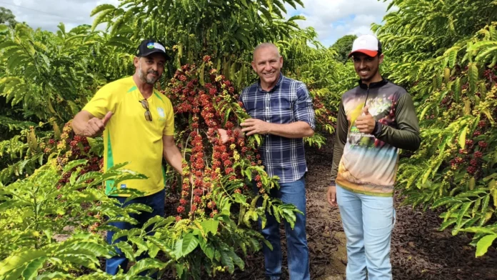 Ezequiel Neiva e o vereador Jeremias visitaram a plantação do presidente da Aspronove